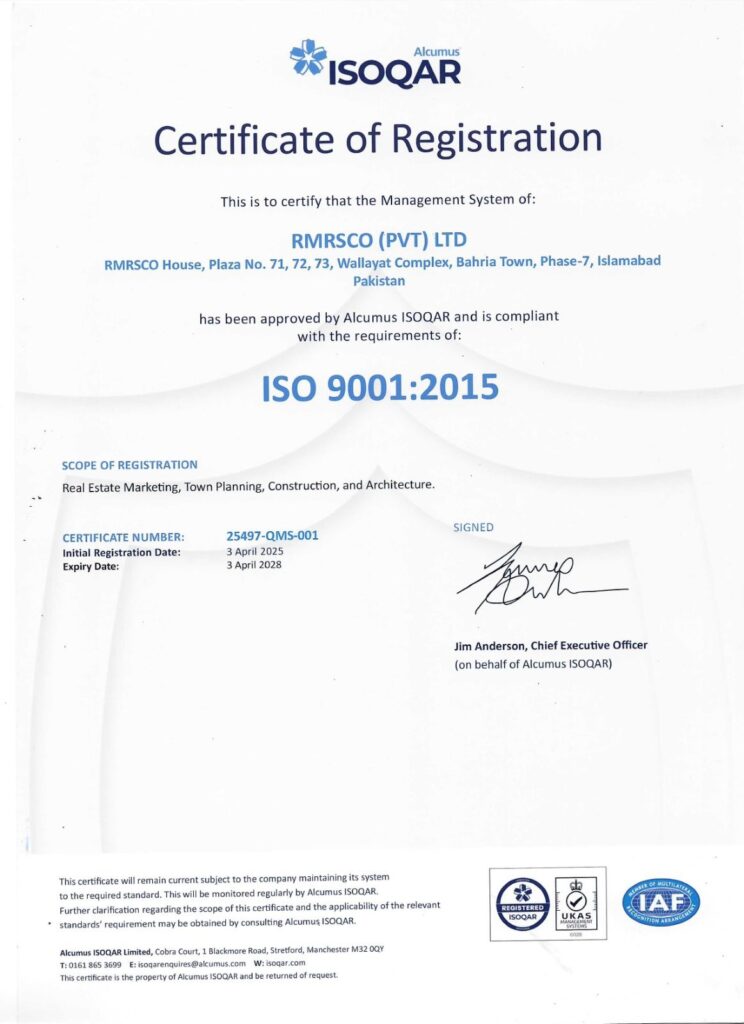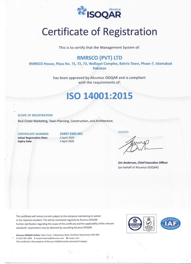 We believe in collective wisdom and teamwork therefore, we combine and synergize our energies and professionalism to deliver this high-class project. Alhamdulillah, we proudly announce that RMRSCO is ISO certified firm. We are determined to convert this professional, qualitative, transparent, and international standards certification into the shape of the RUDN enclave.